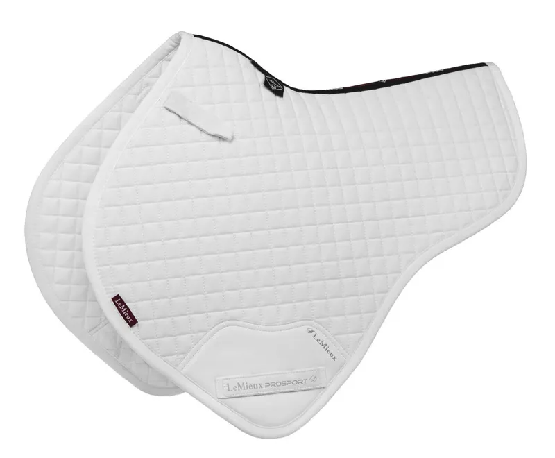 The LeMieux plain cotton Half Square is designed for the competitive rider offering modern style & performance. The more streamline half cut profile is cooler than a full square and less bulky, making it one of the least restrictive jumping pads. With its high wither, elasticated D-Ring tabs and signature teardrop girth protection area this is a very sporting looking pad.