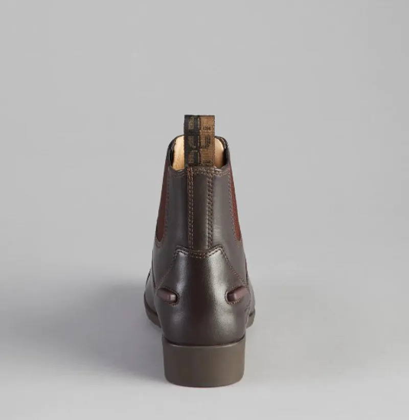 Elastic side panels improve comfort and flexibility around the ankle, making these leather horse riding boots perfect for use everyday. At the heel of the boot you will find two-point spur rests above the embossed PE branding on the outside of the boot. To provide lasting comfort, the moulded anti-slip sole has been designed to support the heel, bridge and ball of the foot whilst absorbing shock and impact from walking. Finished with a subtly branded pull tab, these comfortable short riding boots are perfect for your seasonal equestrian wardrobe.